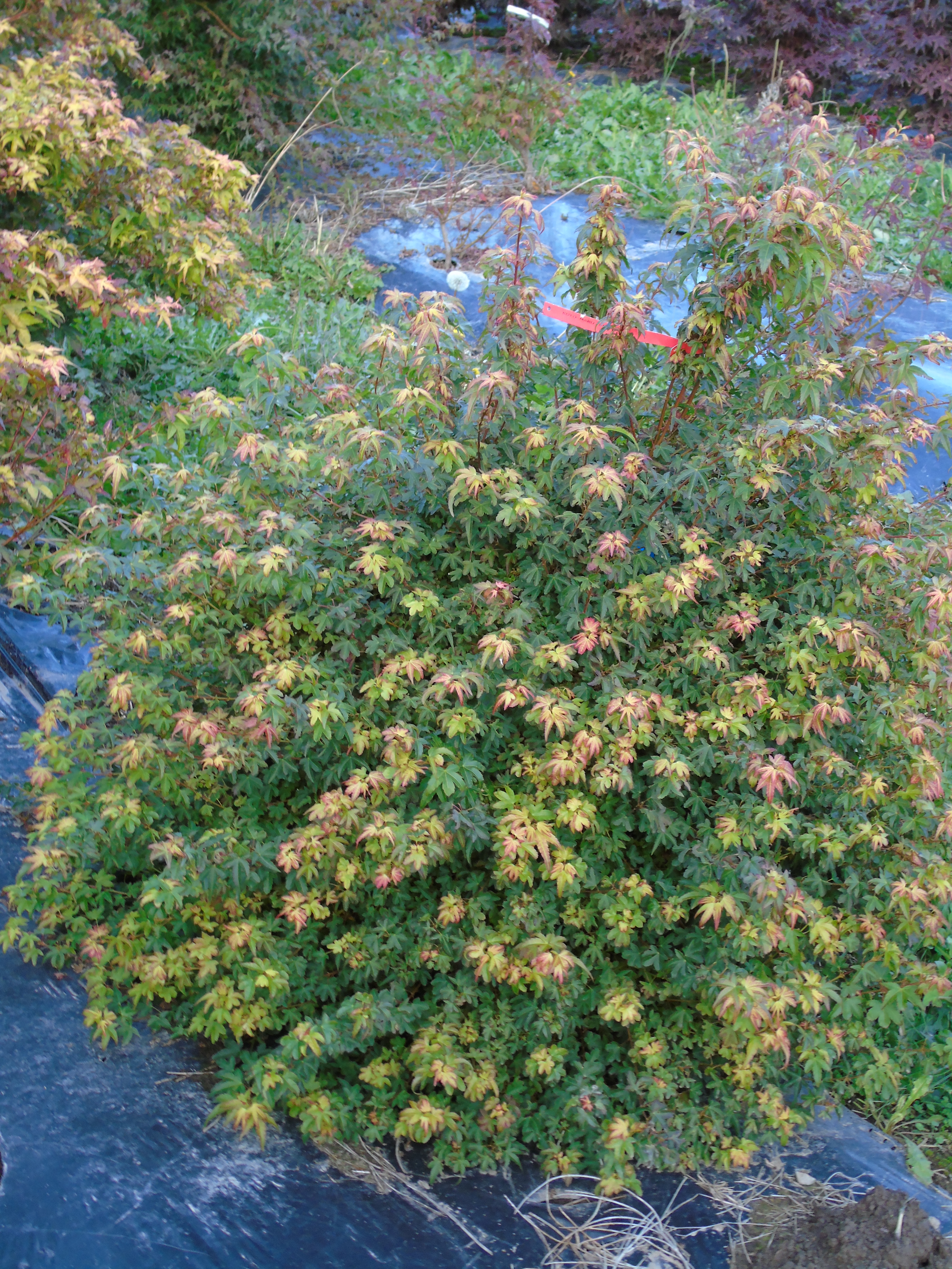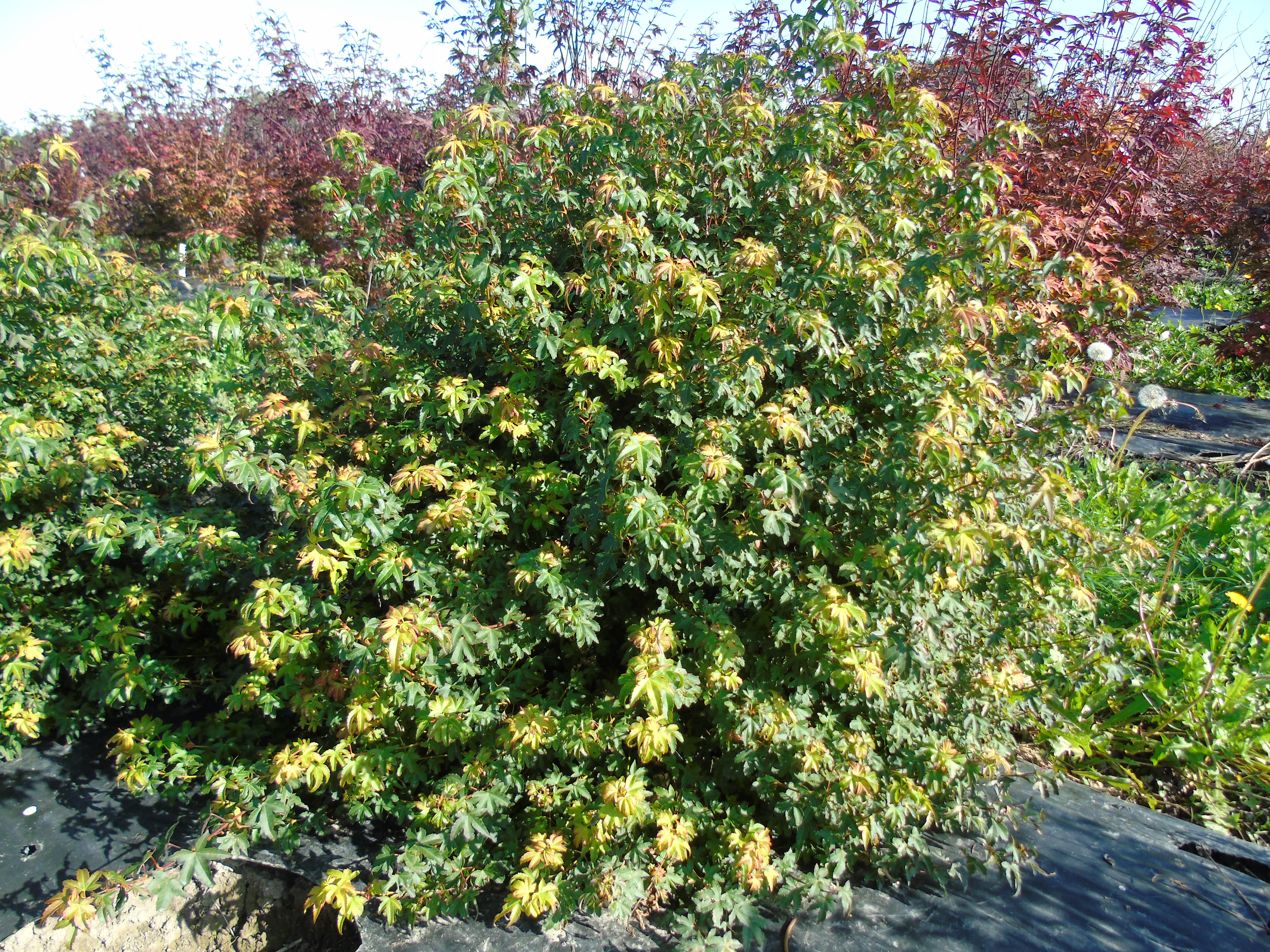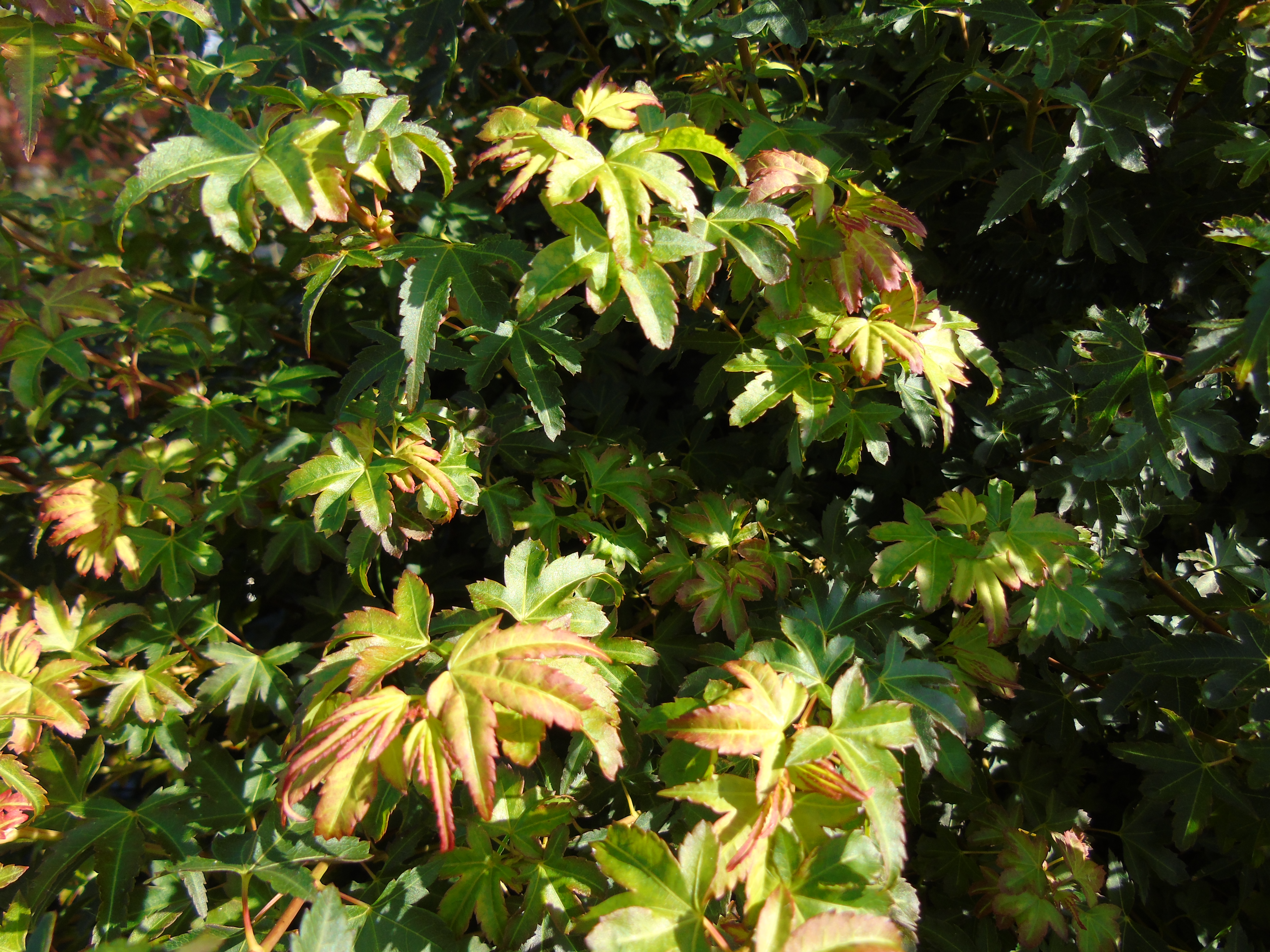 Buisson compact à croissance assez lente, il peut atteindre 2m en tous sens et supporte bien le soleil. Le jeune feuillage jaune avec des pointes bronze vire ensuite vert foncé puis orange vif à rouge en automne.