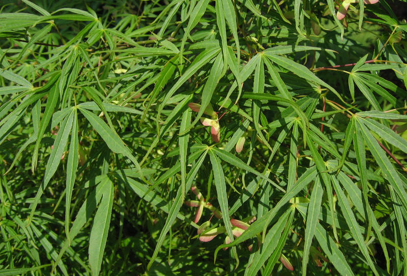 Les lobes laciniés de ses feuilles caractéristiques du groupe sont profondément divisés. Vert tendre au printemps, plus soutenu en été, ses teintes orangées en automne sont jolies. Rustique, de croissance moyenne, il peut atteindre 5 à 7m de hauteur sur 4 à 5m de largeur. Il a une très bonne tenue en exposition ensoleillée.