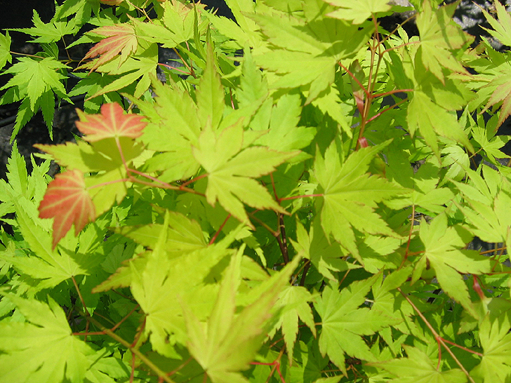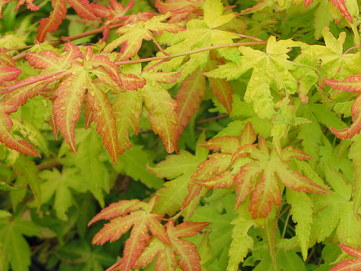 Cet arbuste buissonnant érigé, de 3 à 4m de haut nous propose des couleurs printanières jaune d’or à orangé vif devenant assez vite jaune citron puis vert clair. En automne, il reprend des couleurs orangées avec des nuances de rouge. Il nécessite une exposition mi-ombre (pas de soleil l’après-midi !) pour éviter les brûlures auxquelles il est sensible. Attention trop d’ombre uniformise ses couleurs autour du vert.