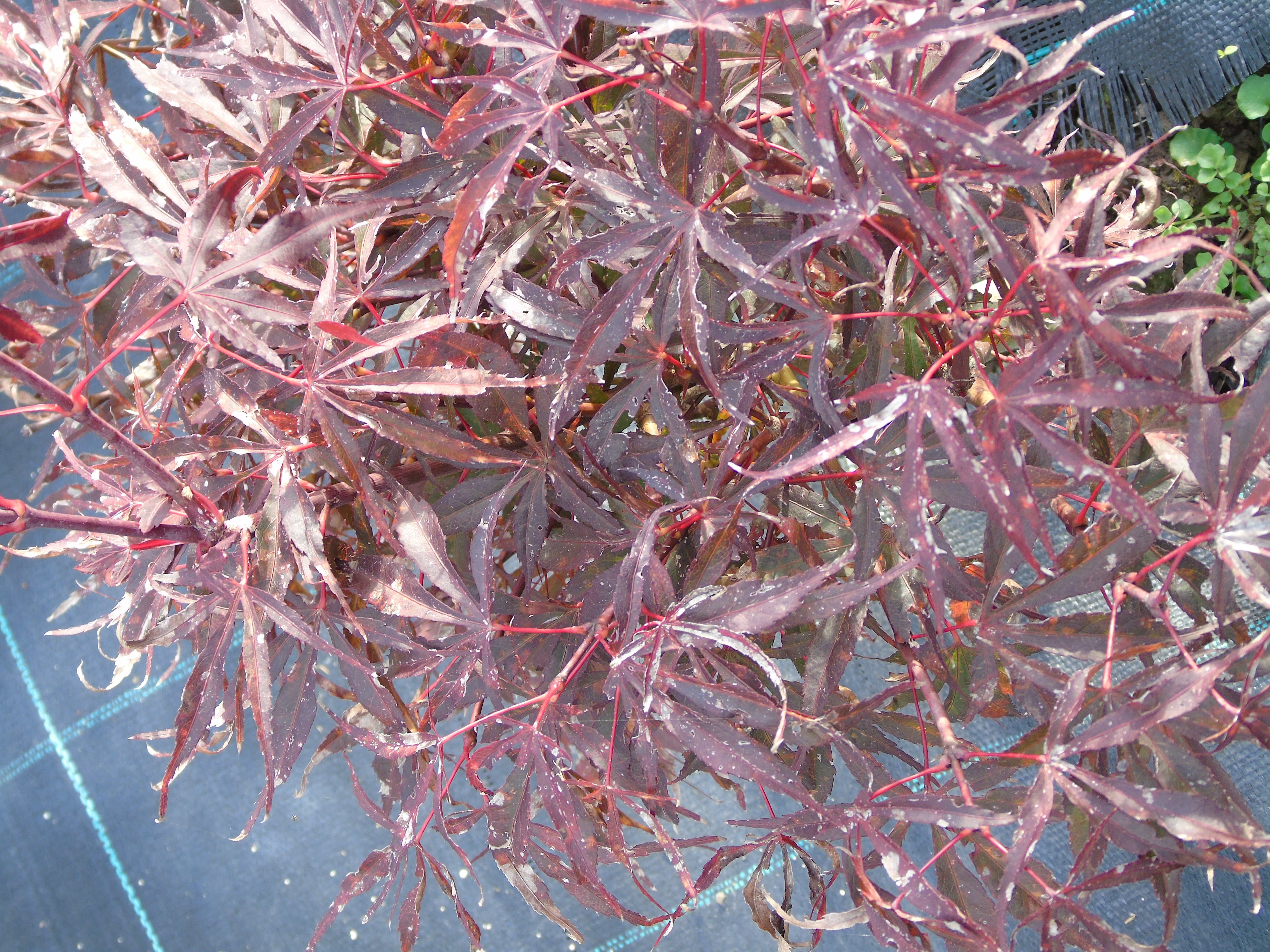 Assez semblable à ‘Oregon sunset’ de forme, il est un peu plus poussant. Ses feuilles aux lobes bien découpés sont rouge pourpre brillant au printemps, puis foncent en été en tendant vers le bronze, avant de prendre des tons rouge orangé en automne. Une exposition mi-ombre à ensoleillée lui convient bien.